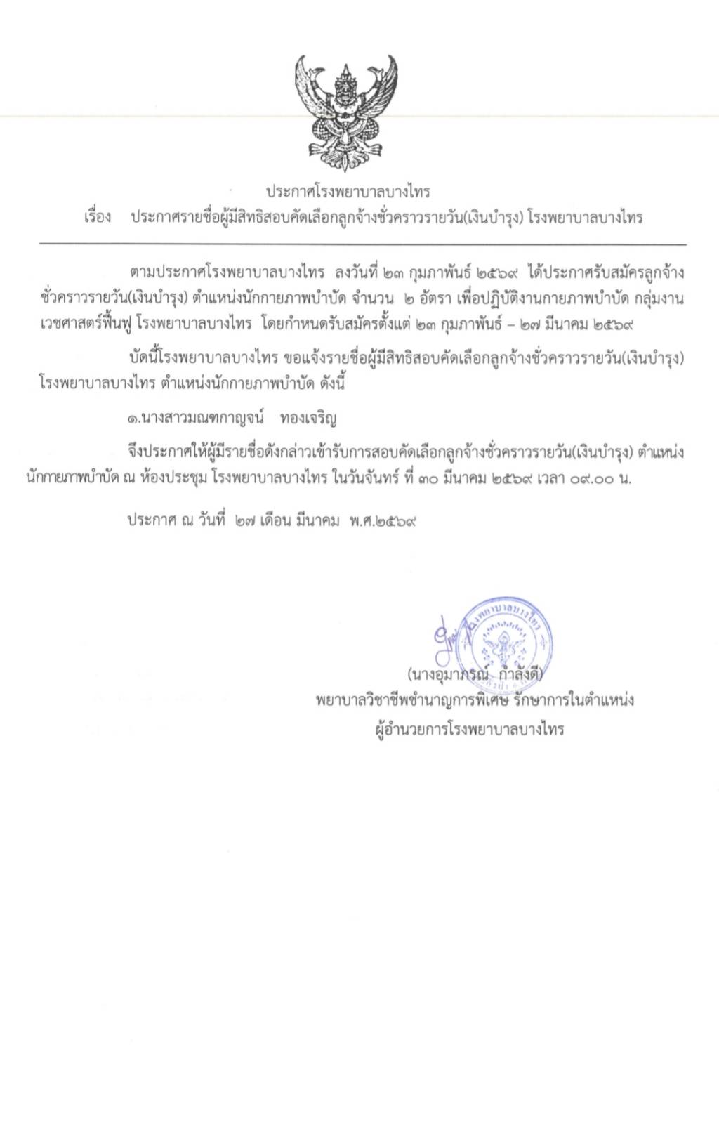 | [ประกาศรายชื่อผู้มีสิทธิสอบ ตำแหน่งนักกายภาพบำบัด] | 73 kB |